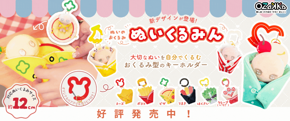 ★★★セットでお得な20%OFF★★★ 4840円(税込)→3872円(税込) (セット内容) ・つなぐるみん(エビフライ) 1個 ・つなぐるみん(タコさんウィンナー) 1個 ★★★★★★★★★★★★★★★★★ 推しぬいがもっと愛おしくなる♡「手と手がつながる つなぐるみん」が新登場! 両手に磁石が入った「ぎゅっとつながるマグネットハンド」で、きぐるみ同士がぴたっと手をつなげるキュートなぬいぐるみ用着ぐるみキーホルダーです♡ 着ぐるみを着せたぬいを複数一緒に持ち歩くと、ふとした瞬間に手をつないでいる姿が見られるかも…!? 「たべものシリーズ」はエビフライ・タコさんウィンナー・ケチャップ・マヨネーズの4種類展開で、推しのイメージや気分に合わせてコーディネートが楽しめます★ ●注意事項 ・磁石がくっつきにくい場合は、磁石の裏表が反転している可能性がございますので、中の磁石をひっくり返すように手をもんで頂くと改善する場合がございます。 ・本商品はセットでの販売です。単品販売はこちら↓ つなぐるみん(エビフライ) https://shop.ozakka.tokyo/items/117597577 つなぐるみん(タコさんウィンナー) https://shop.ozakka.tokyo/items/117598235 ・セット販売は「OZaKKa OFFICIAL ONLINE SHOP」限定です。 【サイズ】 ・エビフライ 約H150×W120×厚さ10mm(手や装飾部分含まず) ・タコさんウィンナー 約H150×W130×厚さ115mm(手や装飾部分含まず) 【推奨ぬいぐるみサイズ】 全長:約120mmまで 幅×厚み(頭):約80mm×70mm程度まで 幅×厚み(体):約60mm×30mm程度まで ミニマスコットやパペットなど、手乗りサイズのぬいぐるみにオススメです。 ※上記サイズ内であっても、ぬいぐるみの形状等により入らない場合がございます。 【素材】 ポリエステル・磁石・金属 【重さ】 約25g ※個体差がある場合がございます。予めご了承ください。 MADE IN CHINA 【ご使用上の注意】 ●本製品はぬいぐるみ用の装飾品であり、ぬいぐるみ等の保護、汚破損防止を目的としたものではありません。 ●取り扱い上の落下および衝撃等による物の紛失・破損・故障、当社では一切責任を負いかねます。 ●水濡れや摩擦などにより色落ち、色移りする場合があります。 ●本製品を火気等の熱源の近くに置かないでください。 ●小さな部品があります。小さなお子様の手の届かないところに保管してください。また誤飲、窒息などの恐れがあるため、口のなかには絶対に入れないようにご注意ください。 ●直射日光や強いライトが当たる場所での保管は避けてください。 ●本製品は洗濯はできません。 ●素材の特性上、特有のにおいがする場合がございます。また時間の経過とともにプリントコーティングの剥離、黄変、シワ、きず、ひび割れ等の劣化が起こることがあります。予めご了承ください。 ●破損、変形、故障が起きた際には使用を中止してください。 ●廃棄の際は、各地方自治体廃棄区分に沿って廃棄してください。 ●オークションやフリマサイト・アプリ・二次流通などにおける購入品のお問い合わせにつきましては、対応をお断りさせて頂く場合がございます。 【磁石に関するご使用上の注意】 ●磁石の入っている部分を電子機器や磁気記録媒体等に近づけると故障や事故・記録の破損等につながることがありますので、近づけないでください。 ●ペースメーカーなど電子医療機器を装着している方へ磁石部分を近づけないようご注意ください。医療機器の正常な作動を損なう恐れがあります。 ●磁石は吸着力が強いので、手を挟まれないようにご注意下さい。 ●磁石を飲み込まないように注意して下さい。万一飲み込んだ場合には直ちに医師に相談下さい。お子さまの手の届くところに磁石を置かないで下さい。 ●金属に敏感に反応するアレルギー体質の方は、磁石に触れると皮膚が荒れたり、赤くなったりする場合があります。このような症状があらわれた場合には磁石に触れないで下さい。 ※「つなぐるみん」登録商標第6969424号