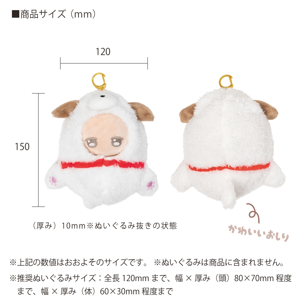 ●本製品はぬいぐるみ用の装飾品であり、ぬいぐるみ等の保護、汚破損防止を目的としたものではありません。