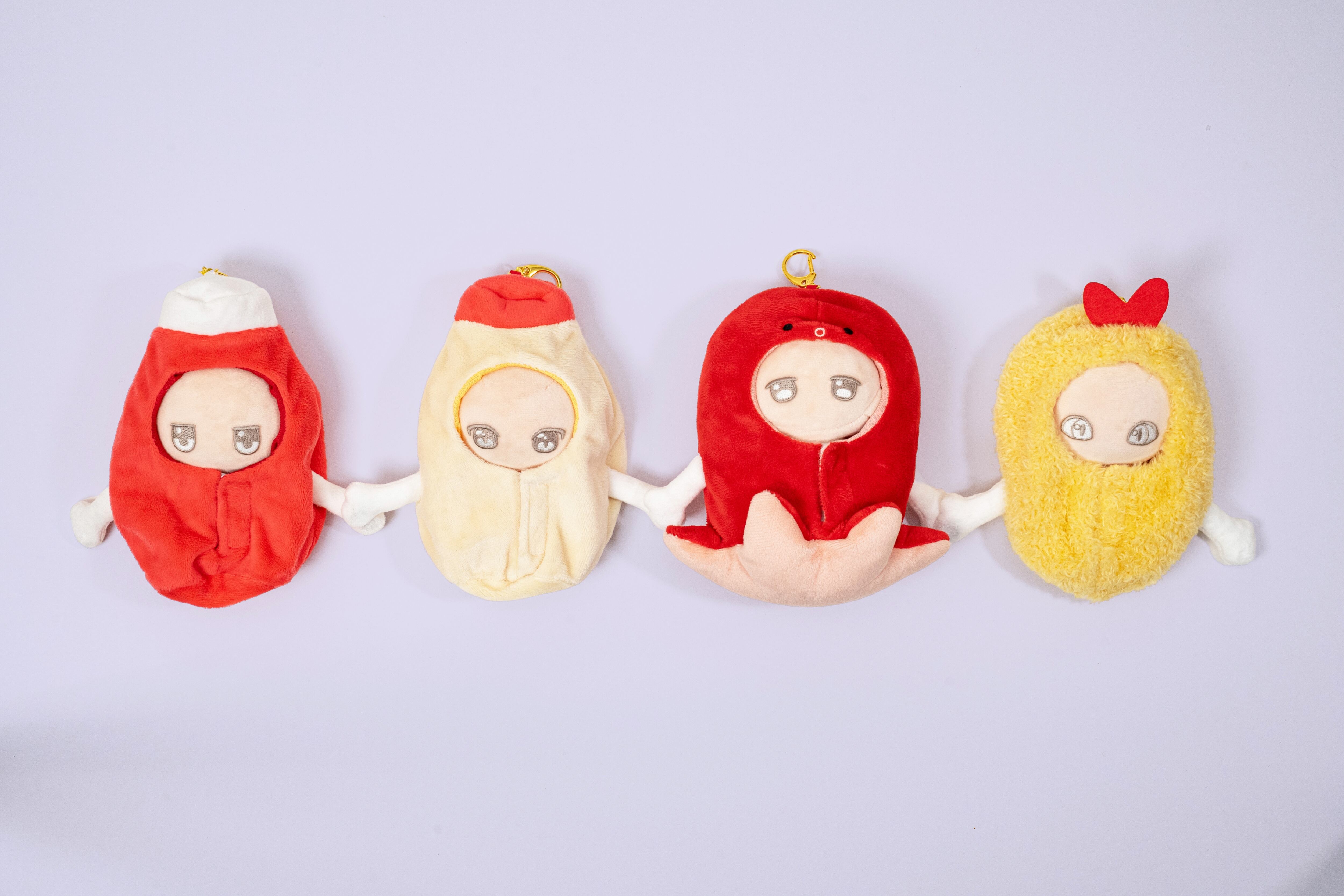 「たべものシリーズ」はエビフライ・タコさんウィンナー・ケチャップ・マヨネーズの4種類展開で、推しのイメージや気分に合わせてコーディネートが楽しめます★