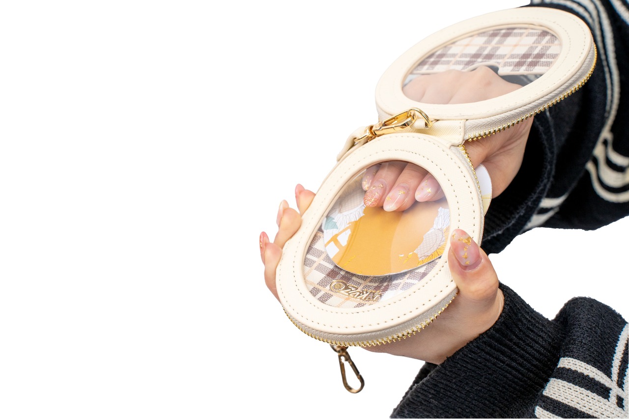 小さめのアクリルキーホルダーや缶バッジなども入れることができ、「推しを可愛く持ち運べる!」とご好評をいただいているアイテムです。