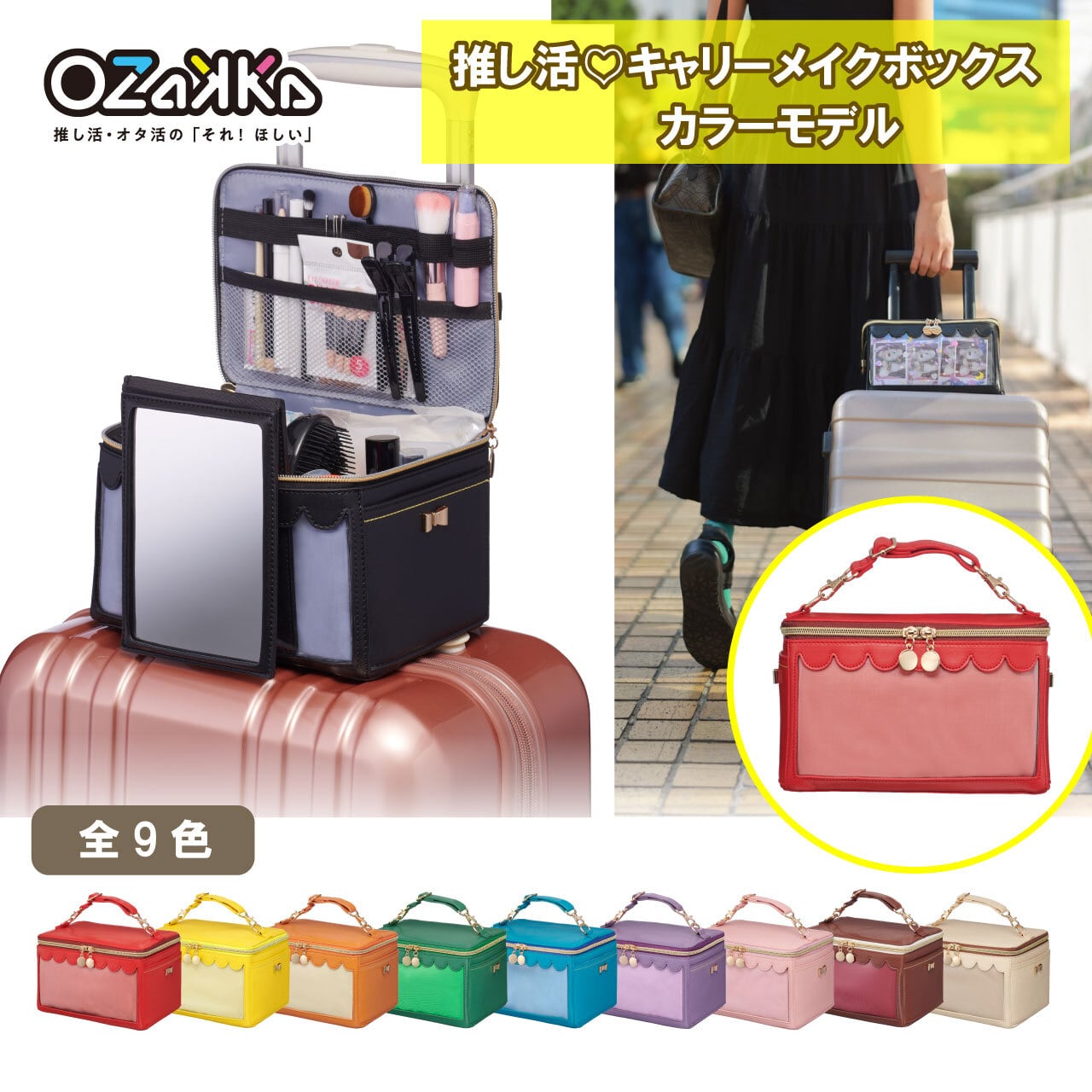 キャリーケースの上に固定して持ち運べる、便利でかわいい推し事メイクボックスです。